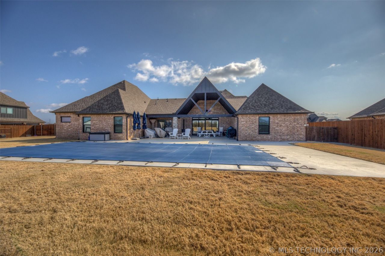 Beautiful custom home with an INGROUND POOL located in the highly desirable Magnolia Heights neighborhood in Bixby. This spacious 4-bedroom home (with an optional 5th bedroom currently used as a media room) features 2.5 bathrooms and sits on approximately half an acre, offering exceptional indoor and outdoor living. The backyard is perfect for entertaining, with a 16' x 40' in-ground pool featuring a depth of up to 6 feet. It backs up to the scenic views of 181 Ranch, providing added privacy and a peaceful setting. Inside, the home features a desirable open kitchen layout with a gas range and double oven. The convenient split floor plan allows guests to enjoy their own privacy away from the primary bedroom. The home also includes a 3-car garage, providing ample parking and storage, along with a full sprinkler system that services both the front and back yards for easy lawn maintenance. Magnolia Heights offers scenic walking paths and neighborhood ponds, making it a fantastic place to call home.
